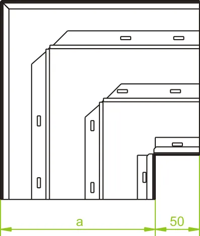 Зміна напрямку кабельної траси. Матеріал S - Сталь, оцинкована методом Сендзіміра PN-EN 10346:2015-09 Доступні варіанти оздоблення: E - нержавіюча сталь