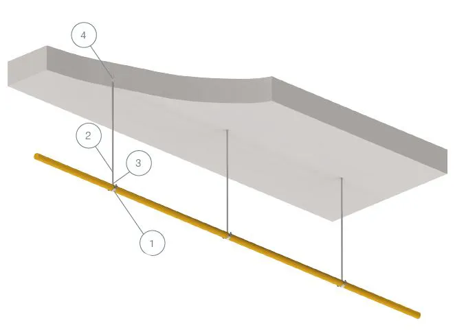 Приклад нестандартного монтажу кабельної розводки - кабельний лоток до стелі. Макс. Ширина кабельного лотка 50 ммТовщина кабельного лотка 0,7 ммМакс. Відстань між опорами 1,5 мМакс. Безпечне навантаження 5 кг/м