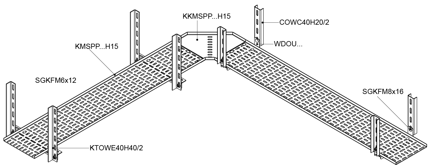 Підвішування компонентів установки. Матеріал F - гарячеоцинкована сталь PN-EN ISO 1461:2023-02 Доступні варіанти оздоблення: E - нержавіюча сталь