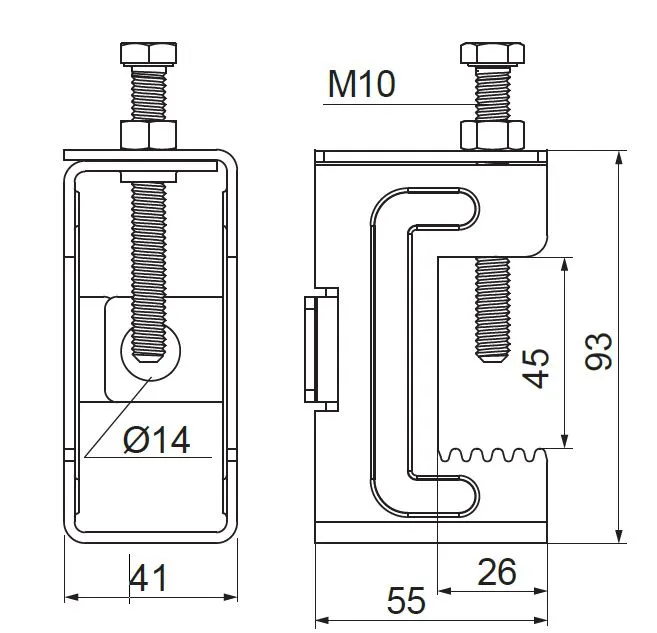 – Отвір Ø14 мм використовується для встановлення різьбового стрижня, гаків або хомутів OZC...