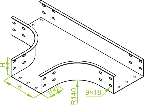 Розгалуження будь-яких існуючих кабельних трас. Матеріал F - гарячеоцинкована сталь PN-EN ISO 1461:2023-02 Доступні варіанти оздоблення: E - нержавіюча сталь L - фарбування у стандартний колір RAL Додаткова інформація Для з'єднання фітингів з кабельними лотками використовуйте прямі з'єднувачі LZC... та комплекти гвинтів SGKFM8x14 або SGFM8x14