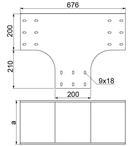 Розгалуження кабельної траси. Матеріал F - гарячеоцинкована сталь PN-EN ISO 1461:2023-02 Доступні варіанти оздоблення: E - нержавіюча сталь L - фарбування у стандартний колір RAL Додаткова інформація – для підключення фітинга до лотка використовуйте з'єднувач LCC... або комплект з'єднувачів LZC... та болти SGKFM8x14 або SGFM8x14