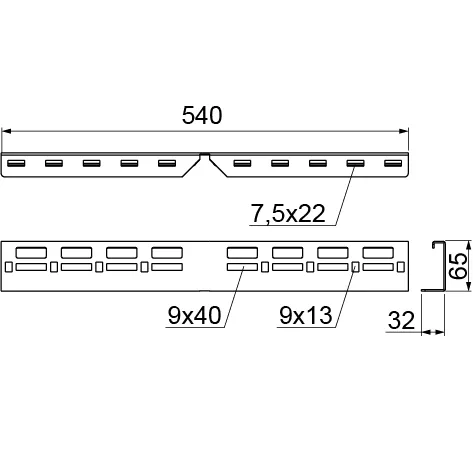 З'єднувальні кабельні драбини, прокладені під різними кутами Матеріал MC - сталь з покриттям Mangelis® Додаткова інформація – використовувати 4 комплекти SGKFM8x14 – нова щільна перфорація, що використовується в з'єднувачі, гарантує болтове з'єднання двох драбин, обрізаних у будь-якій точці як під кутом, так і прямо, без додаткового свердління
