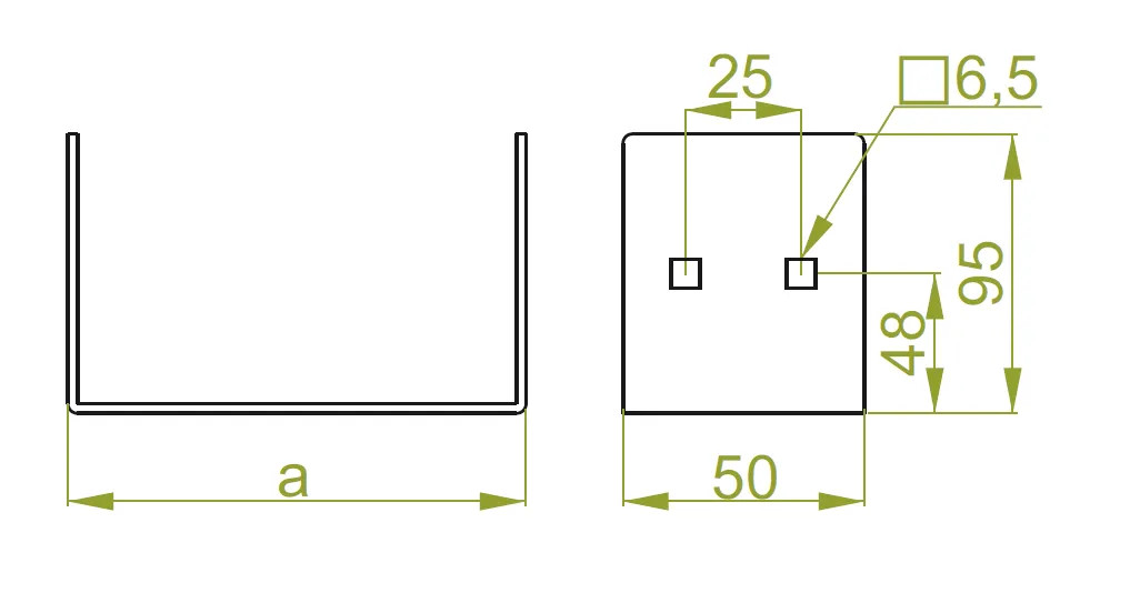 З'єднання лотків та фітингів. Матеріал S - Сталь, оцинкована методом Сендзіміра PN-EN 10346:2015-09 Доступні варіанти оздоблення: F - гарячеоцинкована сталь PN-EN ISO 1461:2023-02 E - нержавіюча сталь Додаткова інформація – використовуйте болти SGKM6x14 для кріплення з лотками