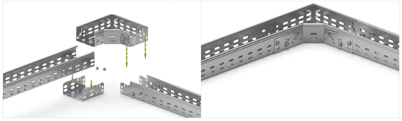 З'єднувальні лотки KLFL75H60... з кріпленням CLICK. Можна комбінувати зі стандартними лотками.