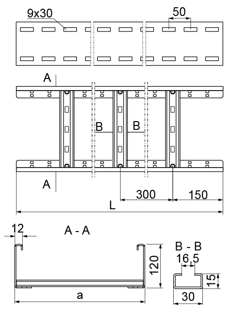 – драбина зі сходами, що підходить для монтажу кабельних затискачів UK/UKO... та UKP...