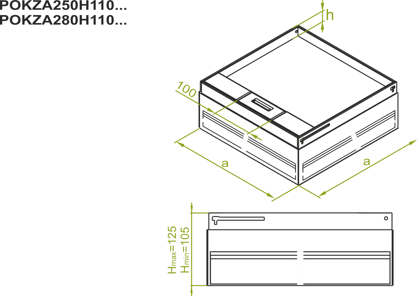 – POKZA180H110..., POKZAS180H110... макс. ширина каналу: 175 мм POKZA205H110..., POKZAS205H110... макс. ширина каналу: 190 мм POKZA250H110... макс. ширина каналу: 240 мм POKZA280H110... макс. ширина каналу: 250 мм