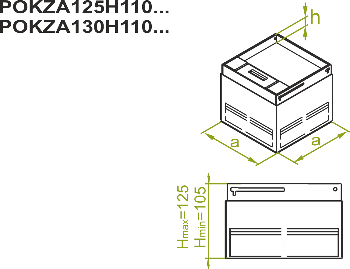 – POKZA180H110..., POKZAS180H110... макс. ширина каналу: 175 мм POKZA205H110..., POKZAS205H110... макс. ширина каналу: 190 мм POKZA250H110... макс. ширина каналу: 240 мм POKZA280H110... макс. ширина каналу: 250 мм