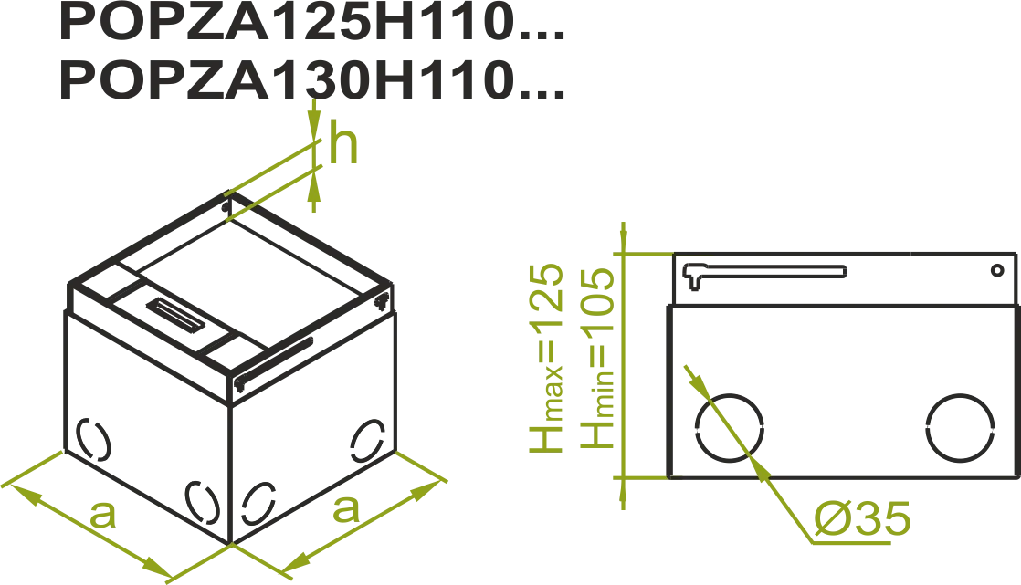– Отвори Ø8 мм у нижній частині корпусу дозволяють кріпити коробку до основи