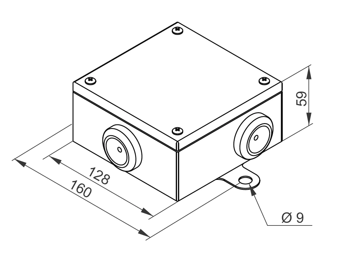 З'єднання та розгалуження кабелів і кабелів в установках із постійною функцією пожежної безпеки E30-E90. Матеріал SC - оцинкована сталь L (RAL 2004) - порошкове покриття RAL 2004 Додаткова інформація Можливе застосування кабельних вводів M32.