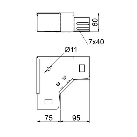 Зміна напрямку кабельної траси. Матеріал S - Сталь, оцинкована методом Сендзіміра PN-EN 10346:2015-09 Доступні варіанти оздоблення: F - гарячеоцинкована сталь PN-EN ISO 1461:2023-02 E - нержавіюча сталь Додаткова інформація – кришки для арматури доступні на запит Примітка Інтегровані з'єднувачі. Збірка без додаткових з'єднувачів.