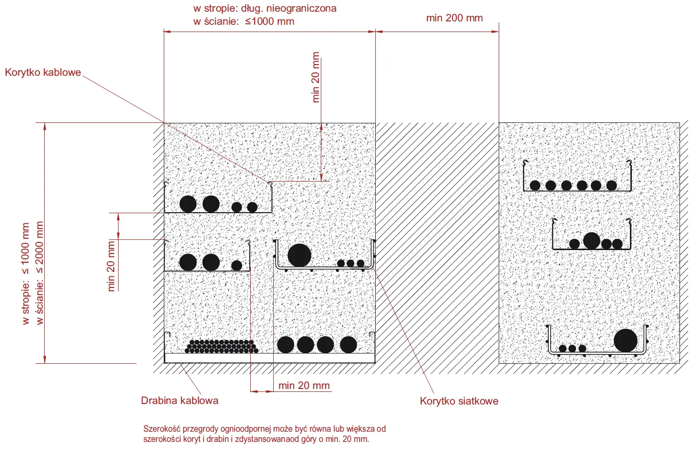 • максимальне навантаження на кабель, дозволене в проході, не перевищуватиме 60%